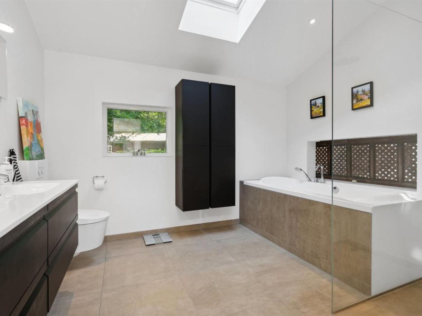 The spacious holiday home has 2 bedrooms, a TV, a fully equipped kitchen with a dishwasher and an oven, and 2 bathrooms with a shower.