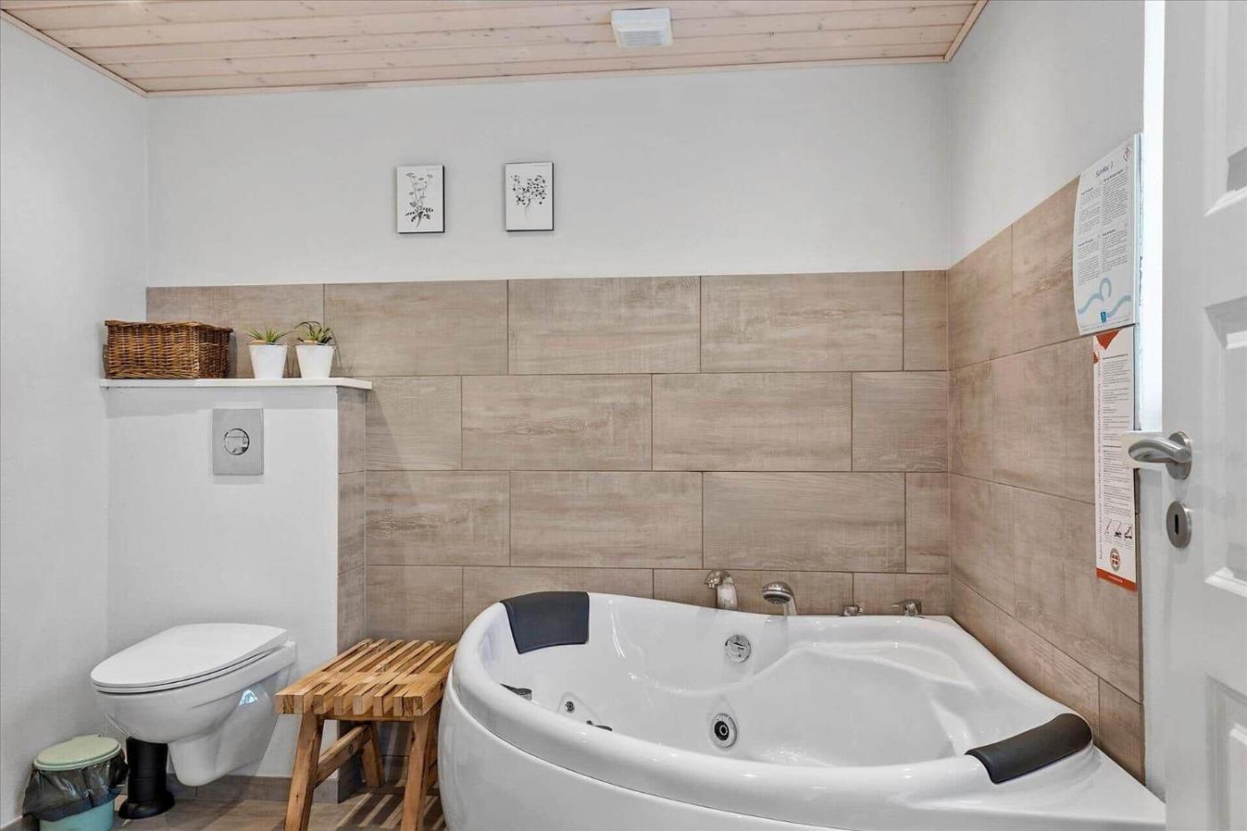 Holiday Home. The hot tub is the standout feature of this holiday home. Boasting 3 bedrooms and 2 bathrooms with a shower, this spacious holiday home has a well-fitted kitchen and a terrace. Guests will find a stovetop, a refrigerator, a dishwasher and an oven in the kitchen. The holiday home also comes with a barbecue. This holiday home has a washing machine, a tea and coffee maker, a TV and outdoor furniture. The unit offers 4 beds.