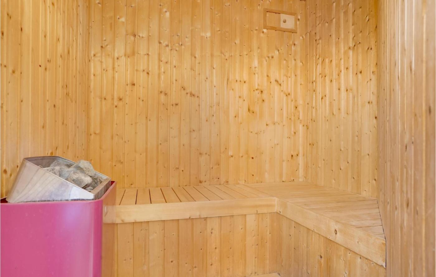 Three-Bedroom Holiday Home. This luxurious holiday home provides a hot tub, a sauna and a fireplace. Featuring a private entrance, this holiday home comprises 1 living room, 3 separate bedrooms and 2 bathrooms with a shower. Guests will find a stovetop, a refrigerator, a dishwasher and kitchenware in the well-equipped kitchen. The holiday home also provides guests with a barbecue. This holiday home features a washing machine, a tea and coffee maker, a TV and outdoor furniture. The unit offers 4 beds.