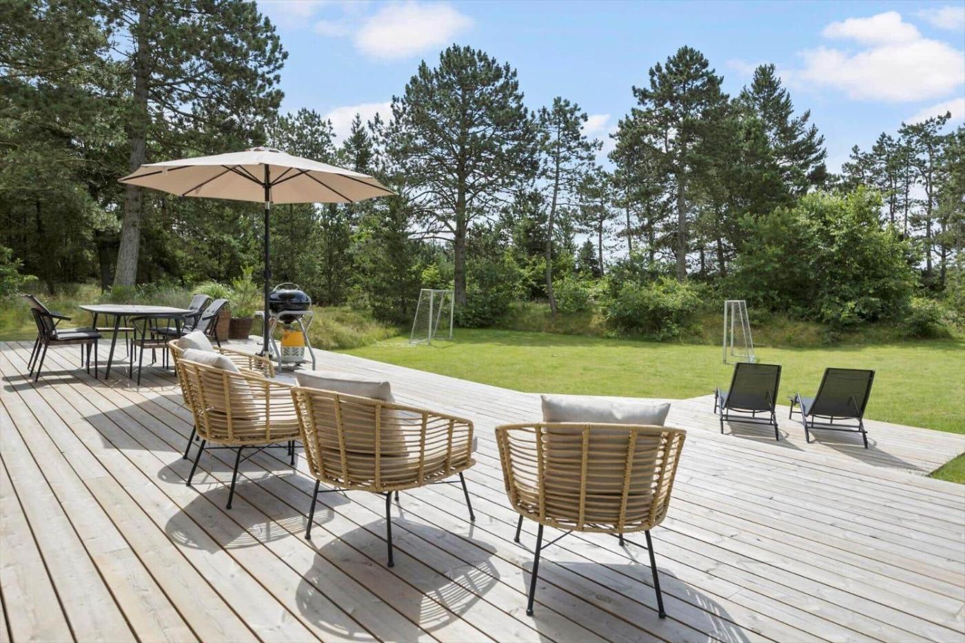 Holiday Home. Boasting 3 bedrooms and 1 bathroom with a shower, this holiday home has a well-fitted kitchenette and a terrace. Guests will find a stovetop, a refrigerator, a dishwasher and an oven in the well-fitted kitchenette. The holiday home also comes with a barbecue. This holiday home has a washing machine, a tea and coffee maker, a TV and outdoor furniture. The unit offers 3 beds.