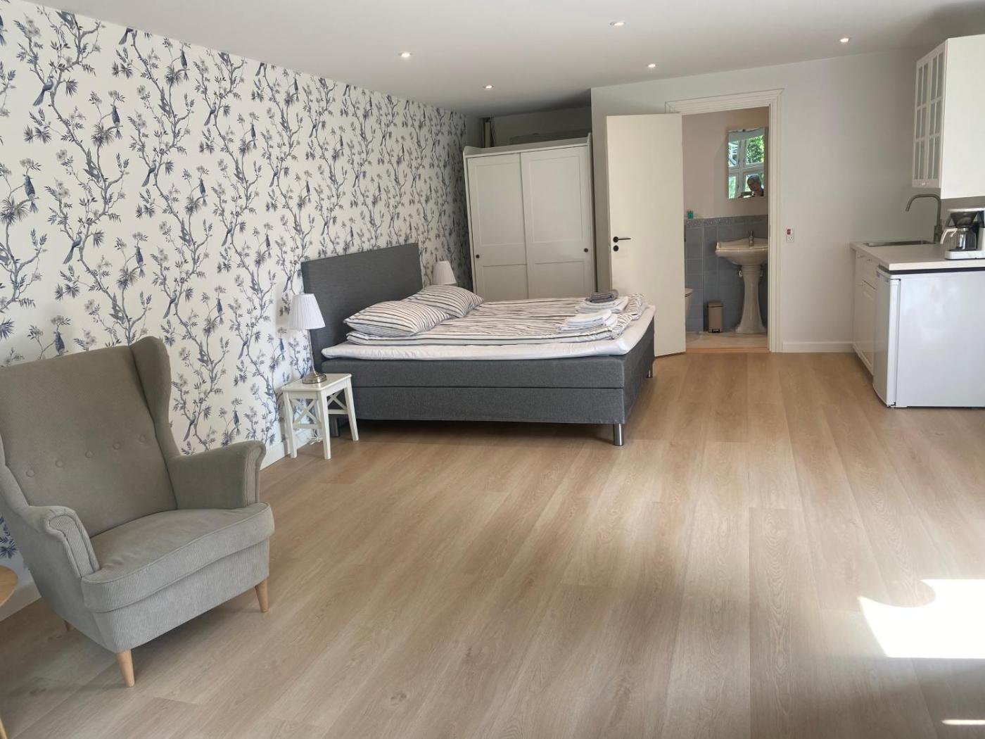 Deluxe Double Room. Providing free toiletries, this double room includes a private bathroom with a shower and a hairdryer. The double rooms kitchenette, which features a refrigerator, is available for cooking and storing food. The spacious double room provides a private entrance, a tea and coffee maker, a seating area, a dining area and a flat-screen TV with cable channels. The unit offers 1 bed.