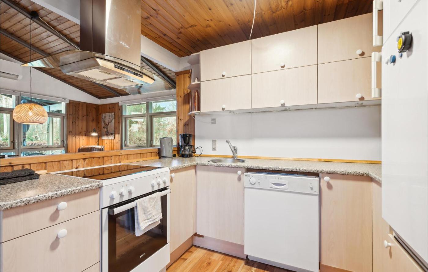 Three-Bedroom Holiday Home. This holiday homes standout feature is the fireplace. Featuring a private entrance, this holiday home also is comprised of 3 separate bedrooms, 1 bathroom with a shower, a kitchen and a dining area. Guests will find a stovetop, a refrigerator, a dishwasher and kitchenware in the well-fitted kitchen. The holiday home also has a barbecue. This holiday home features a washing machine, a tea and coffee maker, a TV and outdoor furniture. The unit offers 4 beds.