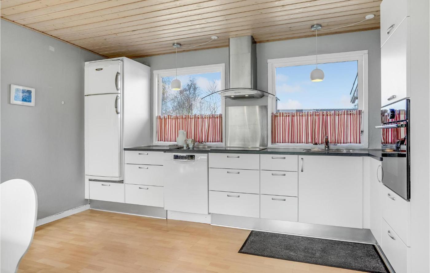 Three-Bedroom Holiday Home. This holiday home offers a fireplace. Featuring a private entrance, this holiday home comprises 1 living room, 3 separate bedrooms and 1 bathroom with a shower. Guests will find a stovetop, a refrigerator, a dishwasher and kitchenware in the well-fitted kitchen. The holiday home also provides guests with a barbecue. Boasting a terrace, this holiday home also provides a washing machine, a tea and coffee maker and a TV. The unit offers 3 beds.