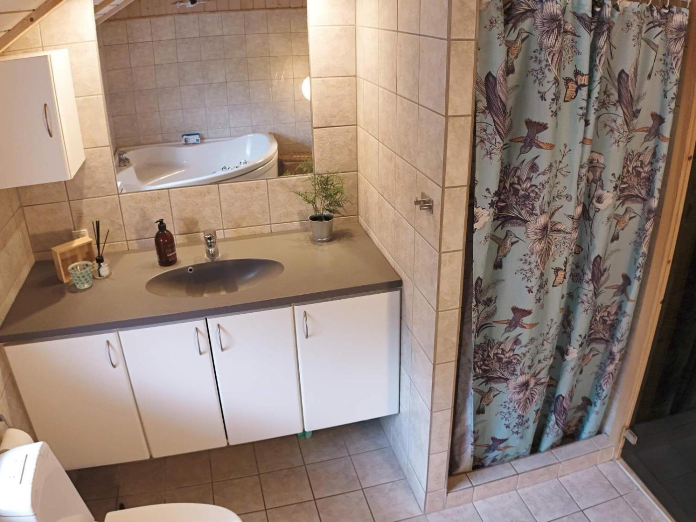 Three-Bedroom Holiday Home. Guests will have a special experience as this holiday home provides a hot tub. Featuring 3 bedrooms and 1 bathroom with a bath or a shower, this holiday home offers a well-fitted kitchen and a terrace. Guests will find a stovetop, a refrigerator, a dishwasher and a microwave in the fully equipped kitchen. The holiday home also has a barbecue. The holiday home offers a washing machine, a tea and coffee maker, a high chair for children, heating, as well as a TV with cable channels. The unit has 3 beds.